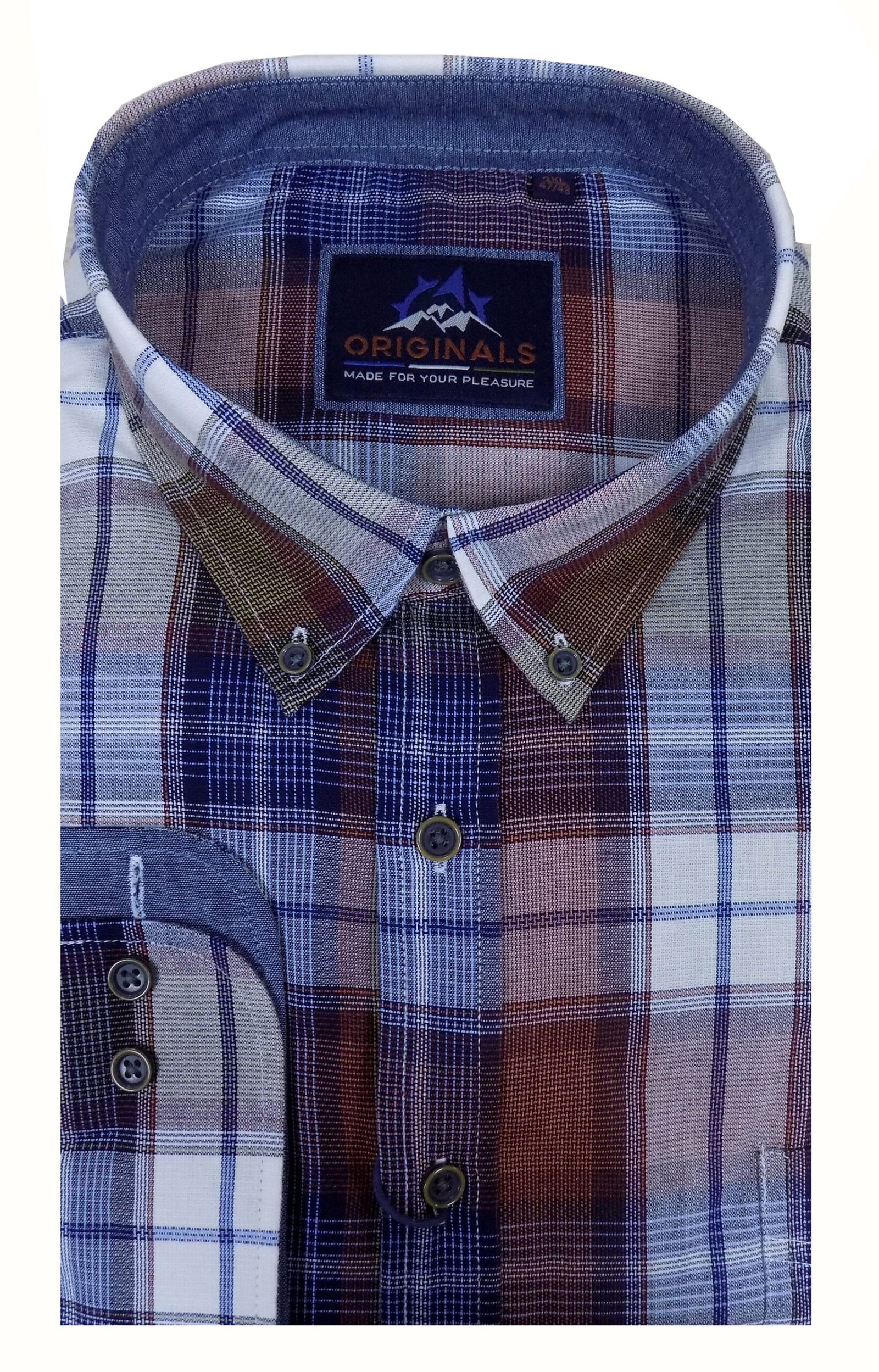 Πουκάμισο μακρυμάνικο, καρό, με τσεπάκι στο στήθος.
